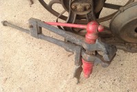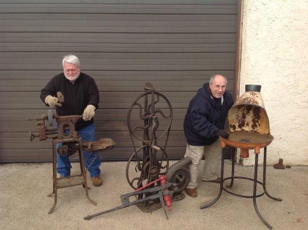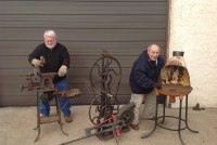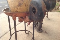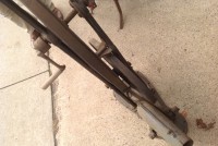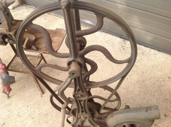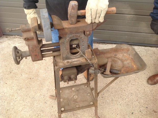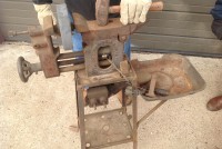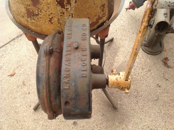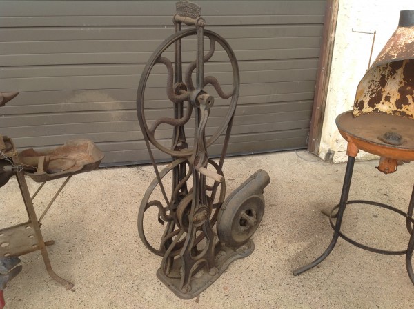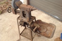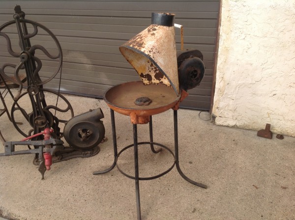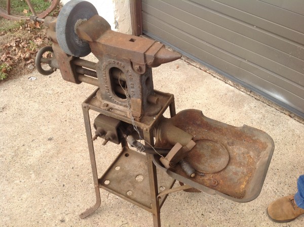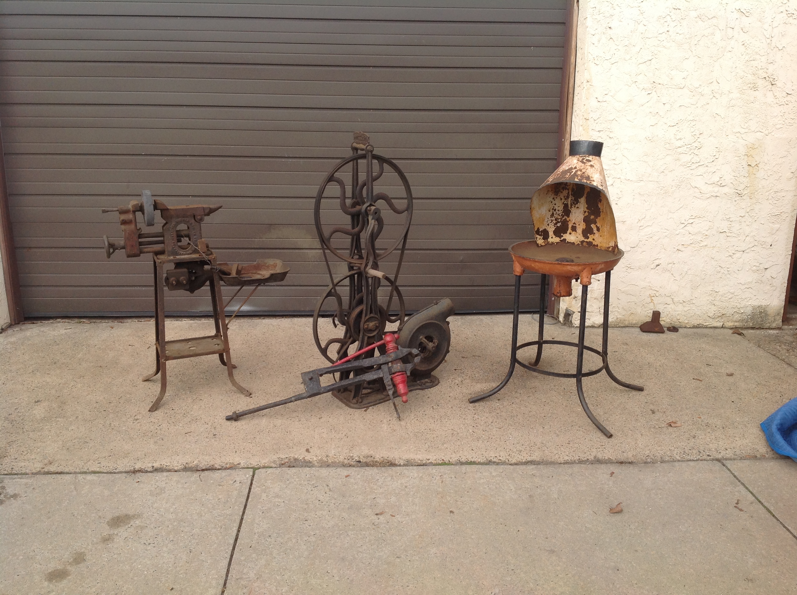 Antique early blacksmiths forge equipment in as found condition. Consists of the pictured pieces minus the two live props. Looks like everything is there but not sure, so ask questions if interested. Must be sold as a complete set only……………