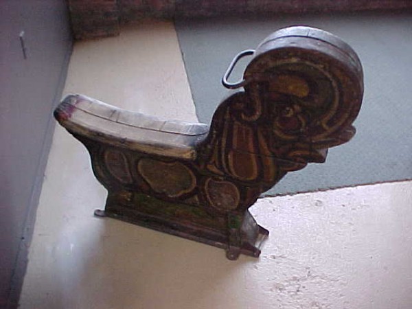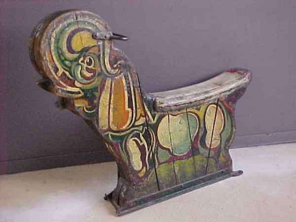 Early French elephant carousel figure in original park paint. Nice condition, sold wood with heavy cast iron anchors. Would enhance any carousel collection…………..