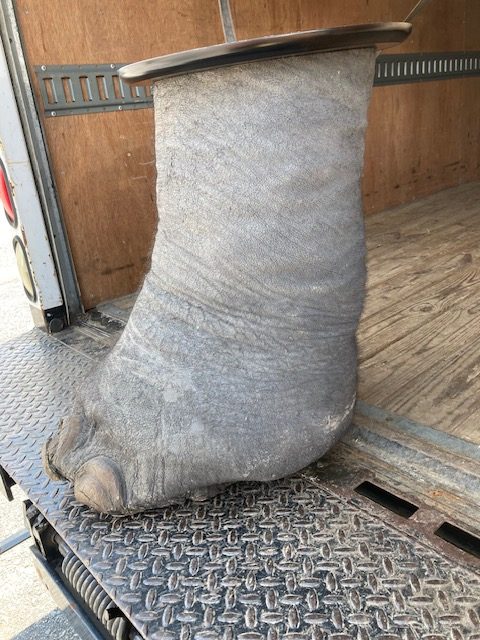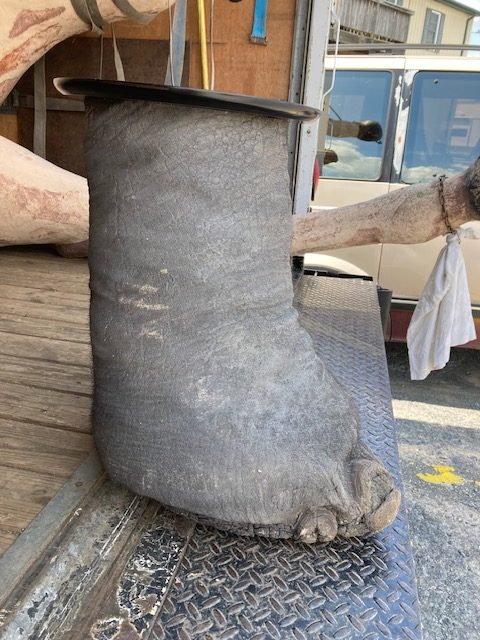 Antique Elephant foot taxidermy stool/table in as found condition. Purchased as an estate item from a Pennsylvania antique shop in the western part of PA. Nice patina