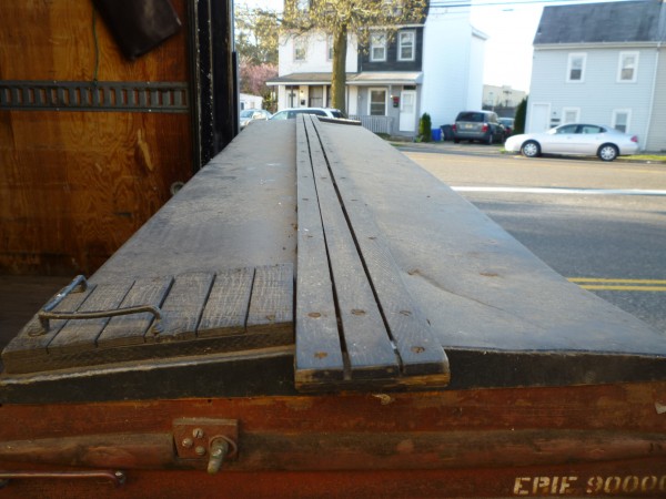 Early Erie railroad freight box car display measuring 7’long x 29″ tall x 17″ wide. Built to scale for displaying in the foyer of a rail car manufacturer in upstate Pennsylvania. Wood construction with a metal frame roof. Just perfect for the railroad enthusiast………