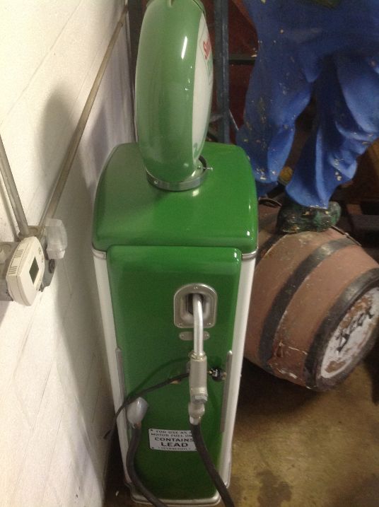 Antique gas station Sinclair gas station gas pump in as found condition. Outside restored with a few smudges but inside remains original. Motor removed. Reproduction gas pump globe and advertising. Nice overall condition for displaying……..