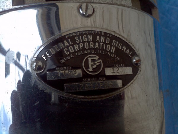 Vintage Federal Sign and Signal Corp. siren in as found condition. 12 volt, measuring 14″ x 10″. Reported to be in working condition but we have not checked it out………