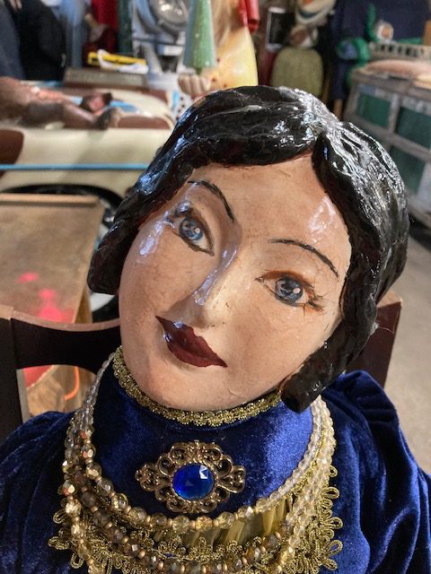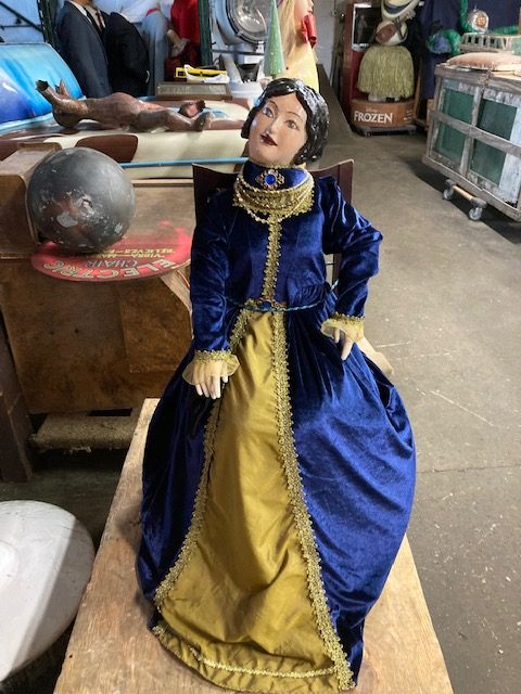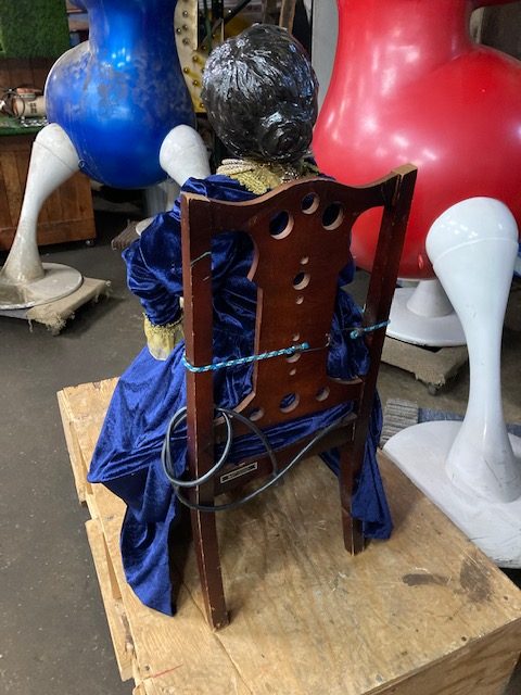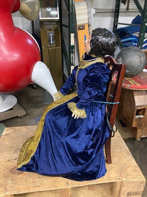 Antique Fortune Teller automation, animated store window display in as found condition. Nice condition for her age. Working shape. Lady moves her head side to side and right arm up and down………..
