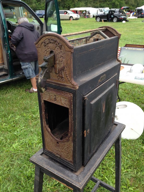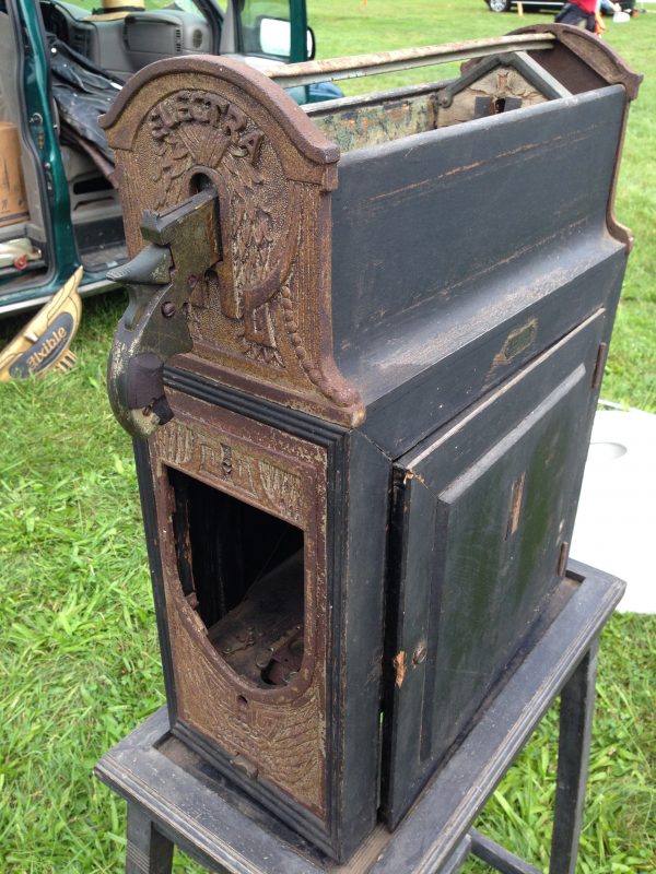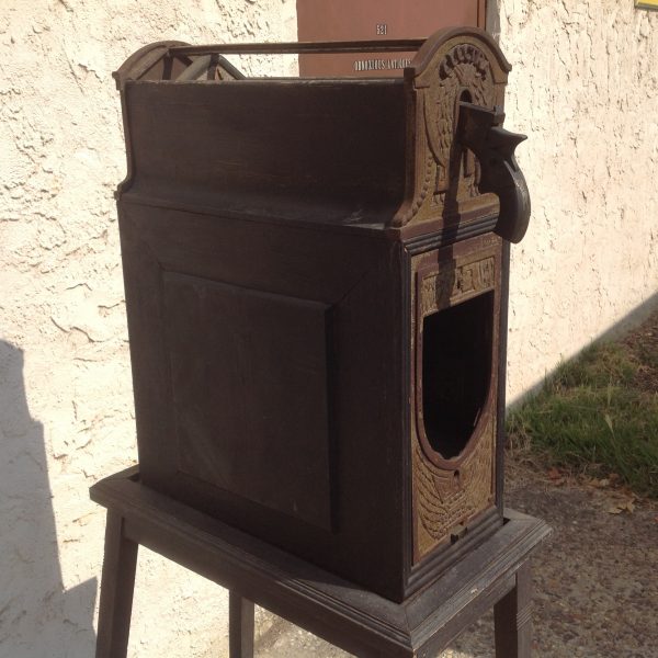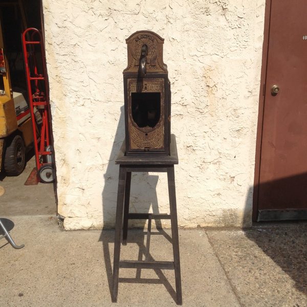Rare antique French coin operated penny arcade pistol game in as found condition. Needs to be restored with most of the important parts intact, so restoration should be possible with minimal difficulty. High retail value when restored. Impossible to find original base included along with tokens. Check out past auctions………