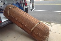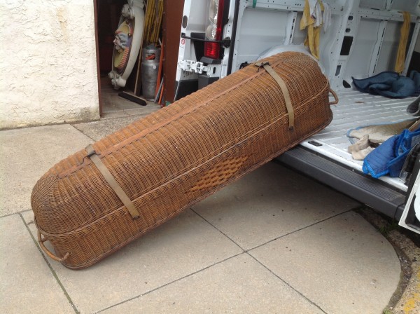 Antique funeral parlor wicker transport casket in as found original condition. Near perfect. Hard to find in this condition………….