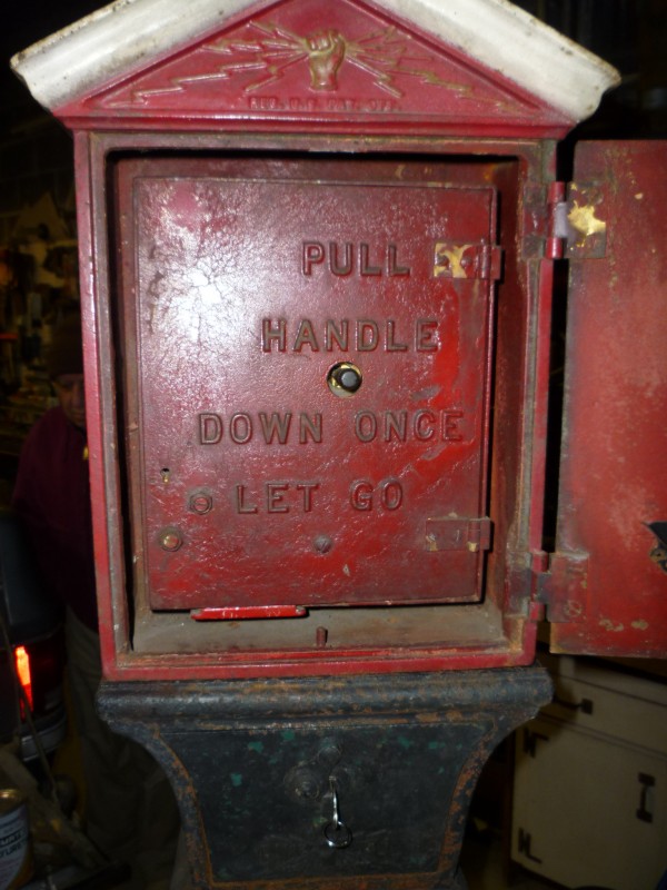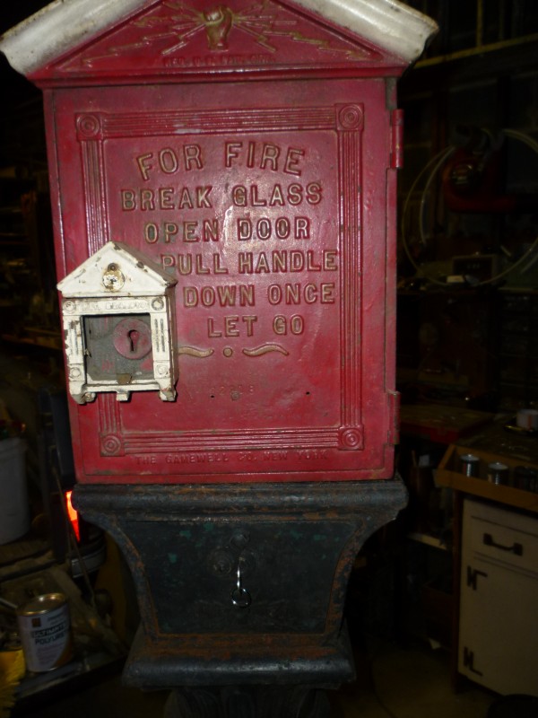 Magnificent old cast iron Gamewell fire corner call box .Fluted cast iron call box in fantastic condition for it’s age. Will need a key and small piece of glass for fire box but otherwise looks complete. Would make a nice addition to anyone’s collection….
