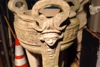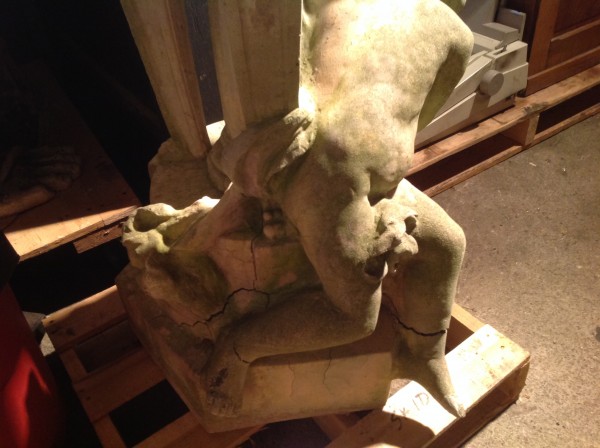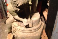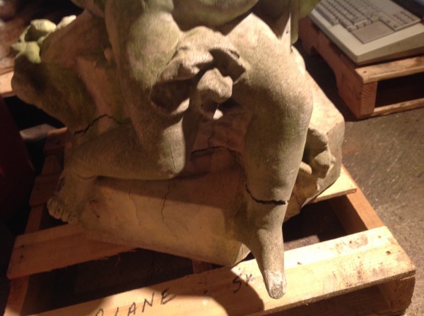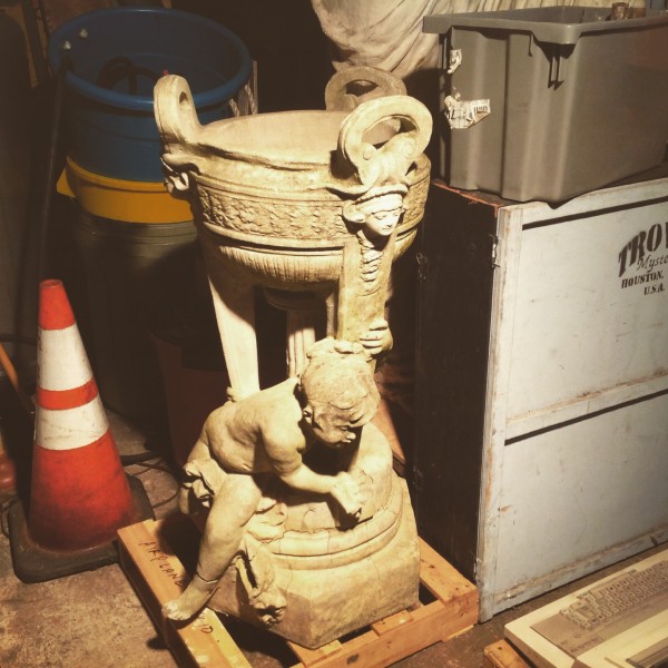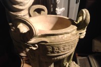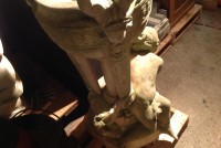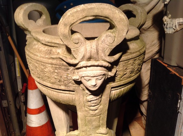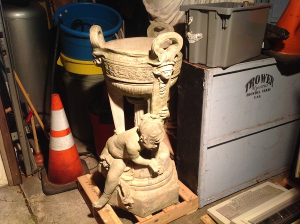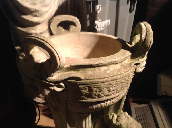 Antique cement garden urn in as found condition. Looks nice with some minor cracks along the bottom base. Heavy and needs a new home………..