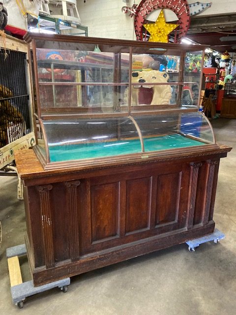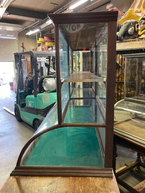 Fantastic old vintage antique general store display case and cabinet in as found condition. This beauty measures 5′ long x 23″ deep x 34″ tall and the base is 6′ long x 24″ deep x 36″ tall. Need that country store look, this would make a great addition. Overall in very nice shape………….