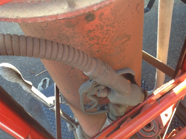 Someone took out the pump and added a beverage tap. Restore or hook up your favorite beverage! Not sure what type of pump it is………