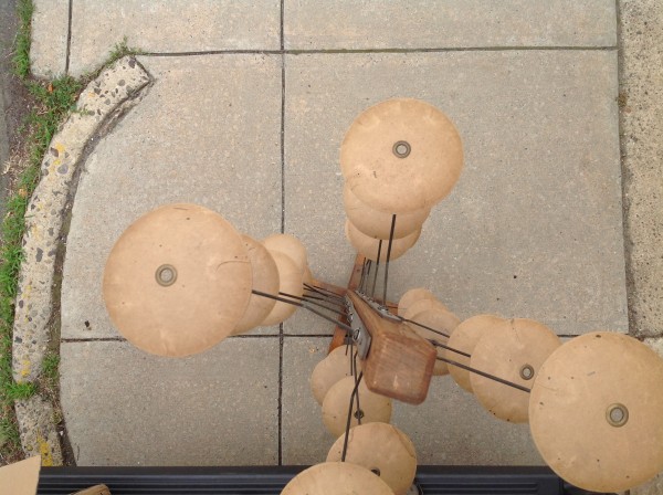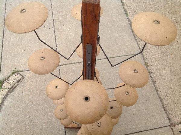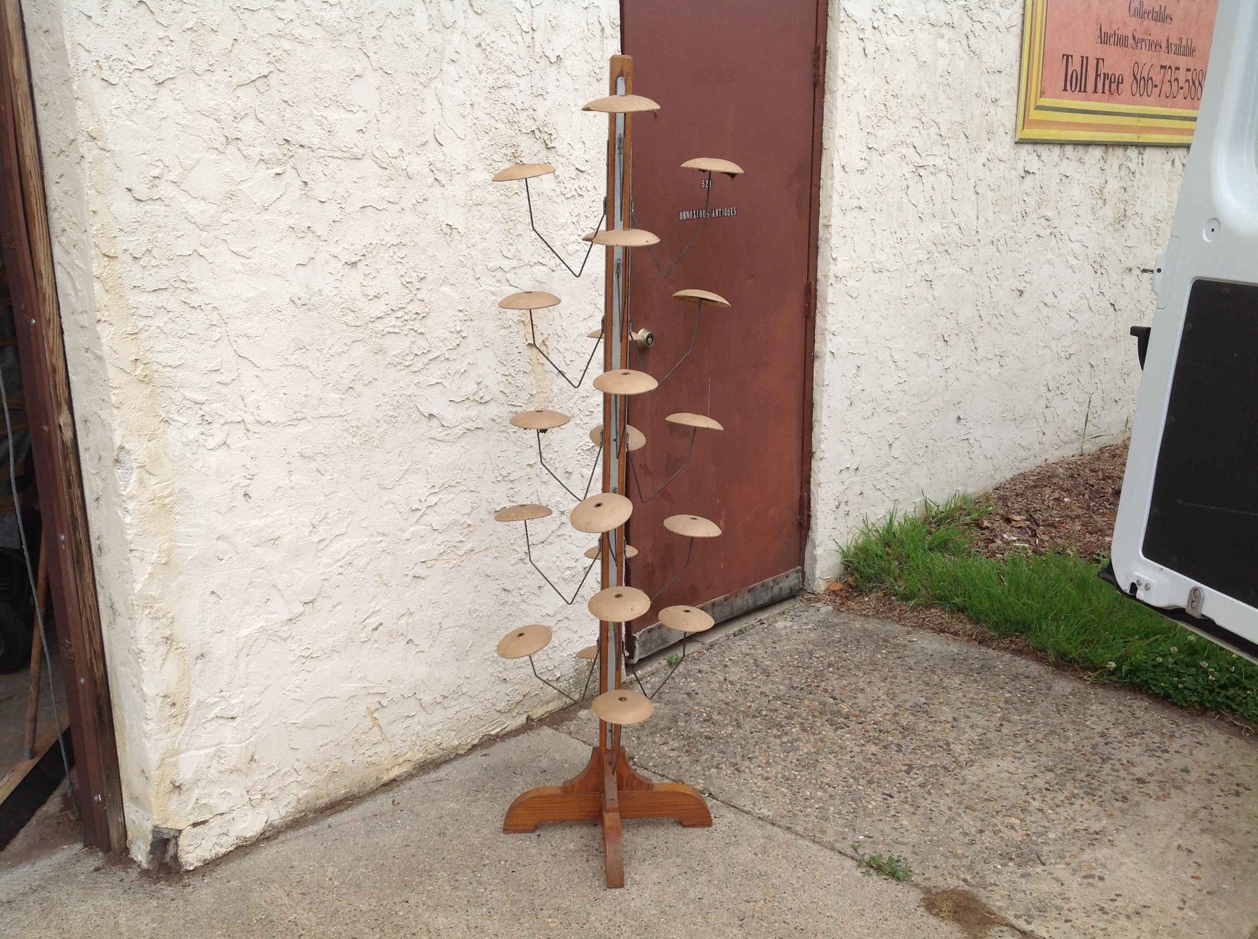Antique haberdasery hat store display in as found condition. Just wonderful, with original hat posts and oak stand. Hard display to find in this condition. Would look fantastic in a country store setting……….