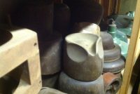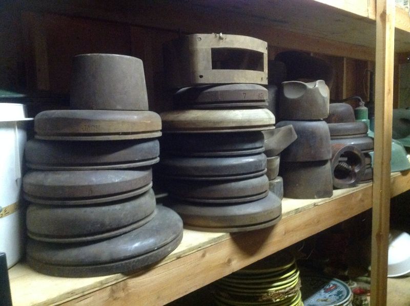 Group of Antique Wooden hat blocks rescued from an old closed up haberdashery. A time gone by….