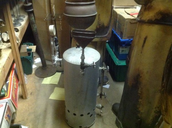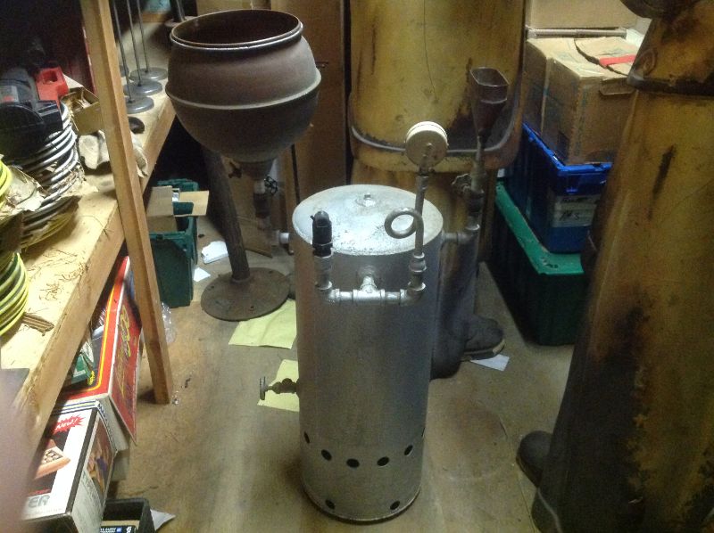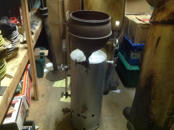 Antique hat steamer in as found condition. Looks to be never used as it was found in a basement behind stacks of old paper. Gas powered. Fill with water to produce steam to mold and clean old felt hats. A real charm. May never see another, so add to your steamer collection………………..