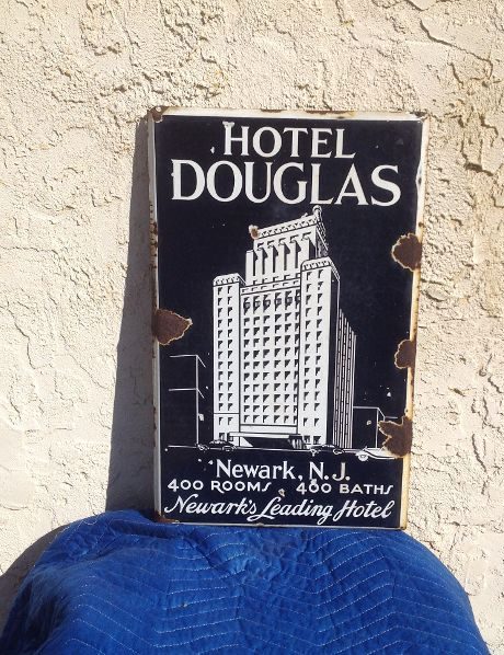 Very rare Hotel Douglas Newark, New Jersey procelain sign in as found condition. Measures about 24″ x 14″. Almost impossible to find this sign in any shape. One to add to your collection, for sure……….