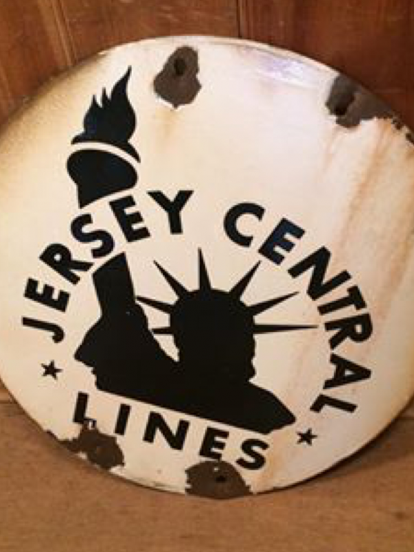 Rare antique Jersey Central Lines porcelain over steel sign in as found condition. Measures 18″ with some nicks and dings. Sign does have a slight bend also. Take a look at pictures below………..