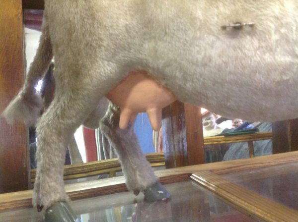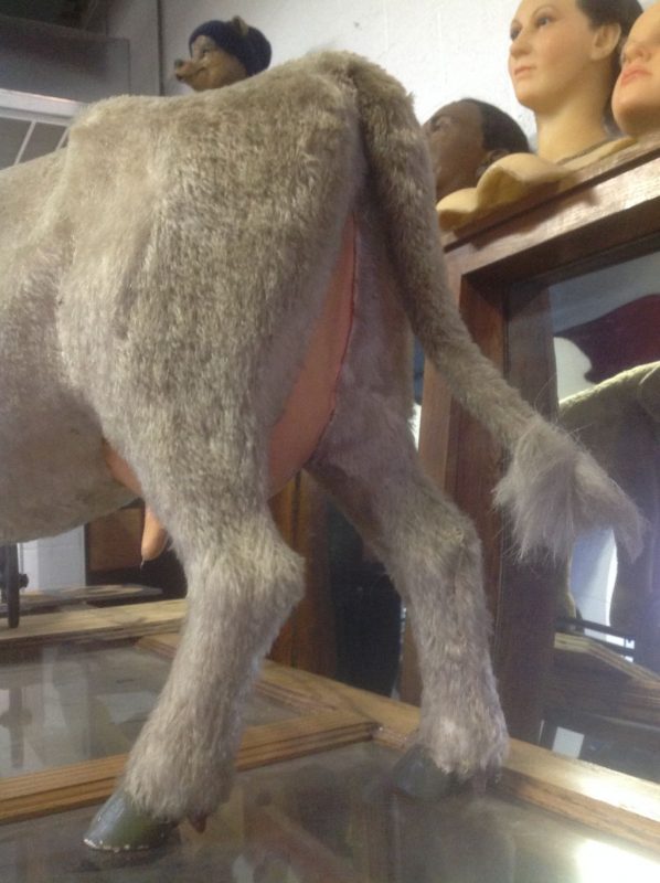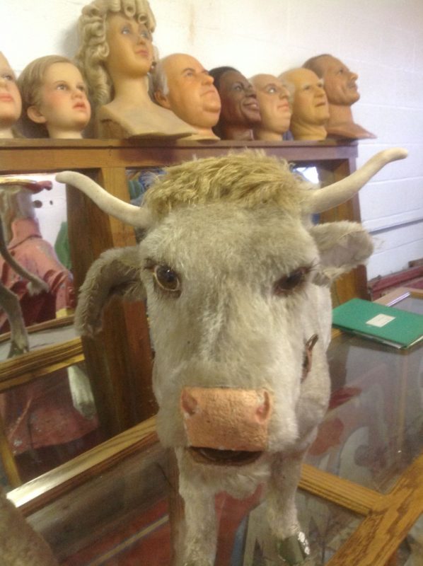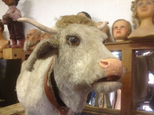 Antique key wound Cow automaton nodder in as found condition. Used but not abused. Believed to be Steiff but no tag visible. Works and displays well………..