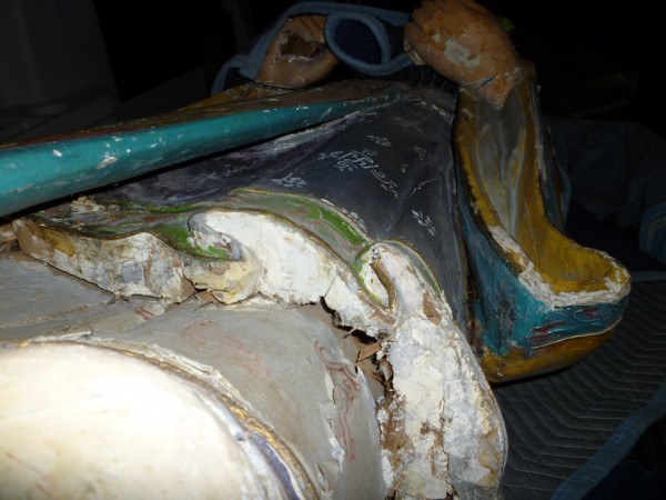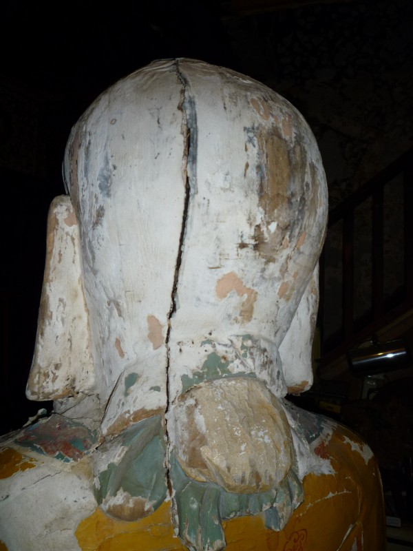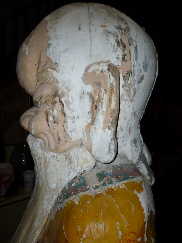 Very early solid wood Confucius,made with several mediums. Wood, Gesso and paper machie. Great old paint and design.
