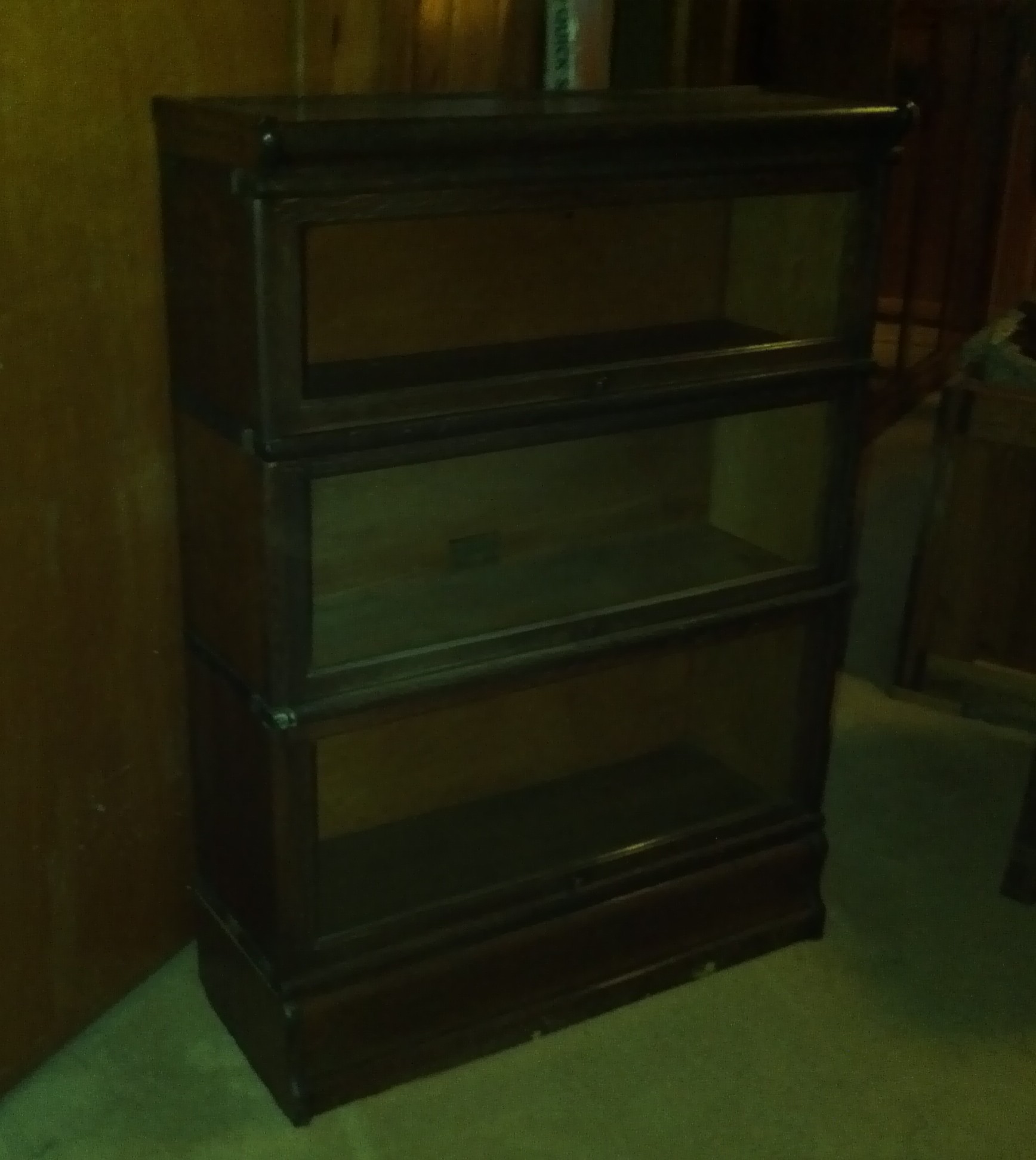 Antique oak Barrister style legal bookcase in as found condition. Lady was downsizing for a move to assisted living and decided to let the case go. Used for years for her prized book collection but the new residence has space limitations. Needs a good cleaning and some wax and it’s ready for displaying………