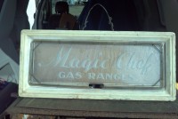 Antique decorative Magic Chef stove neon sign in working condition. Blue neon surrounds an etched glass spelling out Magic Chef. Nice and bright and ready for displaying almost anywhere, kitchen, den, mancave, etc………..