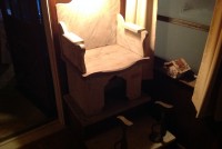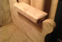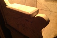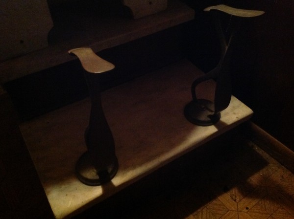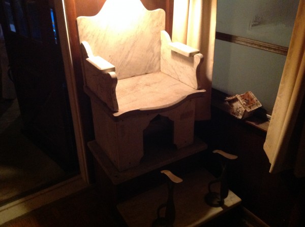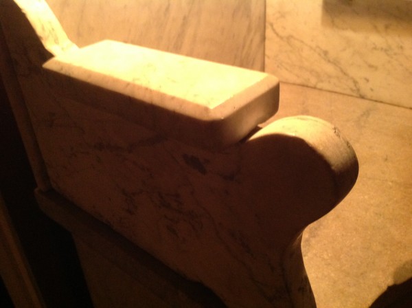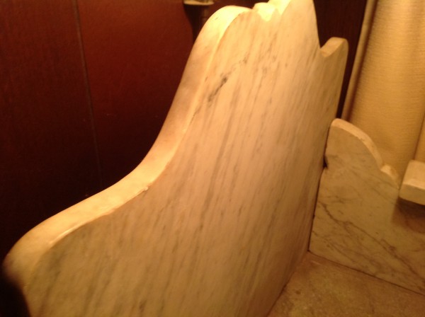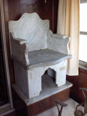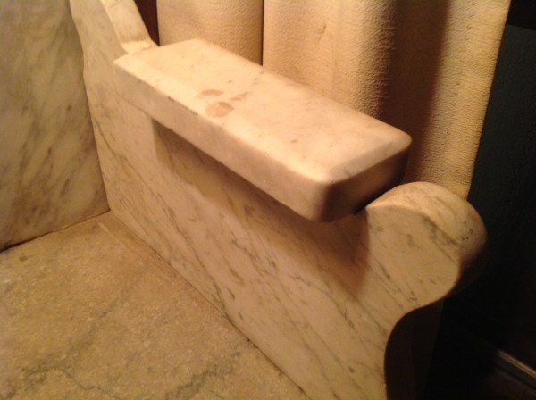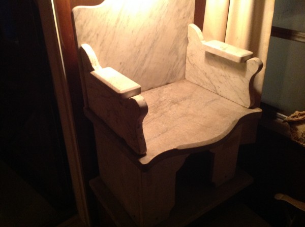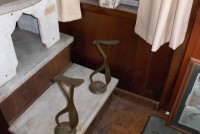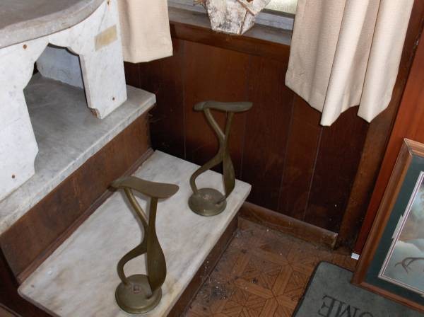 One of the most unusual shoe shine stands ever. Antique marble one seat stand in as found condition with only a few minor chips found. Beautiful condition for its age and heavy. Fortunately, chair comes appart in several pieces as does the marble footrest. Small enough to fit almost anywhere. Never saw one before………