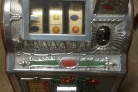 Antique 5 cent Mills Poinsettia Slot Machine in as found working condition. Complete with jackpot. Looks original with a few reproduction parts. Restored sometime during it’s lifetime……