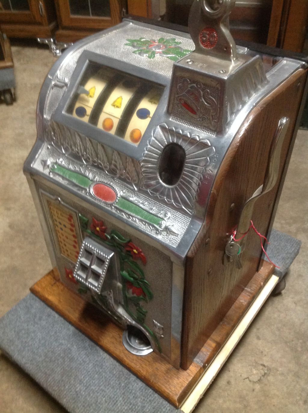 Antique Mills Poinsettia Slot Machine 5 Cent