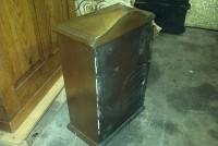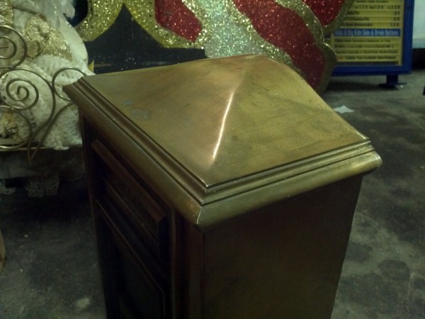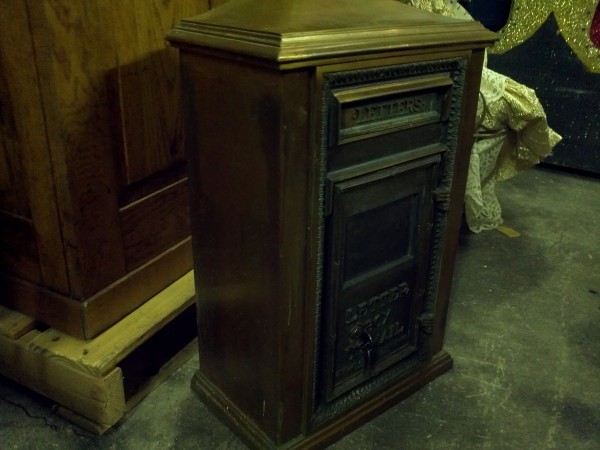 Solid brass antique NY mail box in as found condition measuring 24″ x 16″ x 9″. Complete with key and locking door. Nice decorator item……….