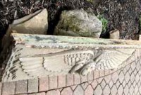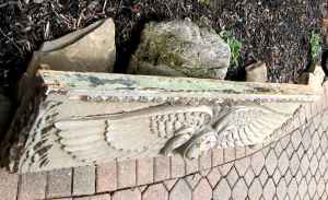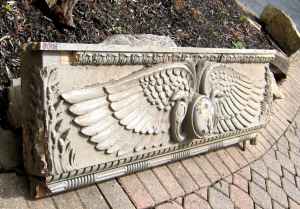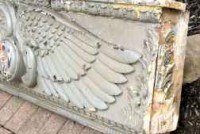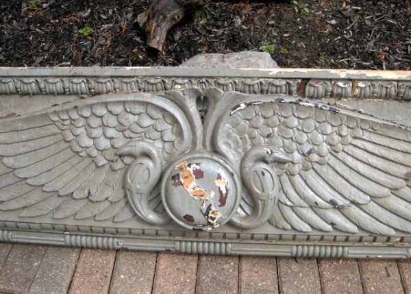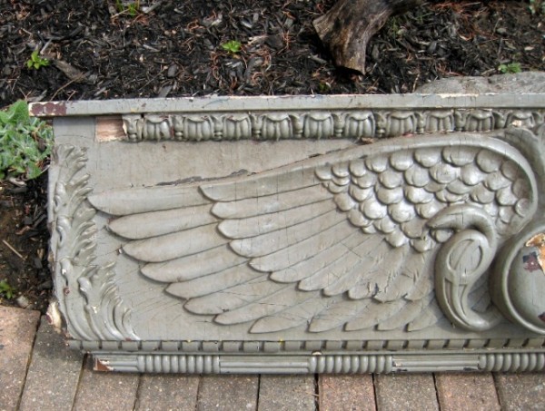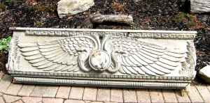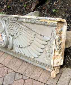 Facade off a building in NYC. Aesculapius symbol indicates the building may have been a hospital or pharmacy. Measures 57″ wide x 17″ tall x 6″ deep. Element is in good condition for being approximately 100 years old. Normal ware with good heavy paint. Some restoration may be necessary. Lovely piece of american architecture……….