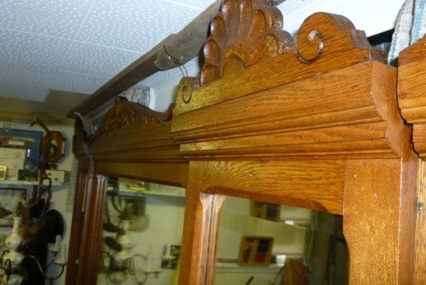 Antique Oak Barber Shop Back Bar