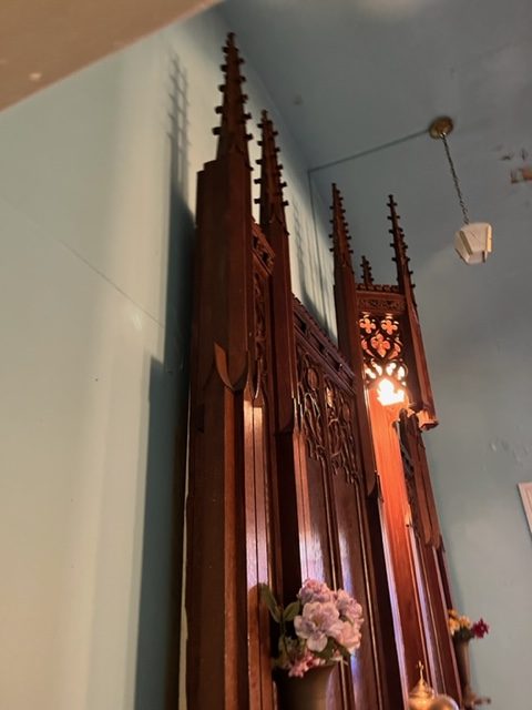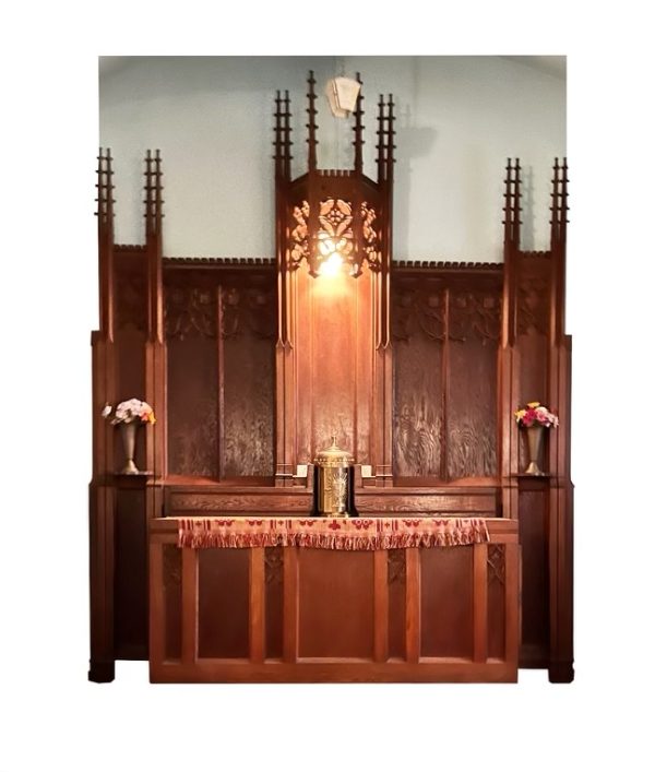 Beautiful antique oak Gothic Church Alter in as found condition. Taken down from an old church located Philadelphia, just a few weeks ago. Great overall condition with magnificent detailing. Measurements available upon request. Currently taken apart for easy transport.