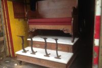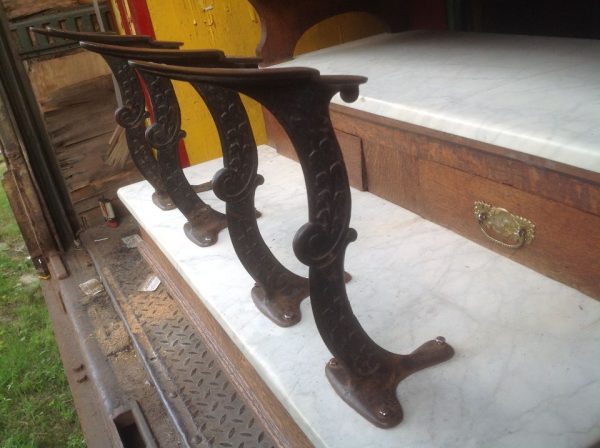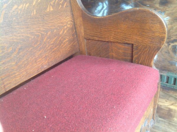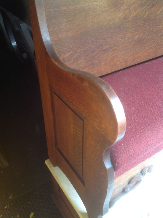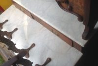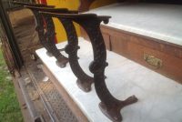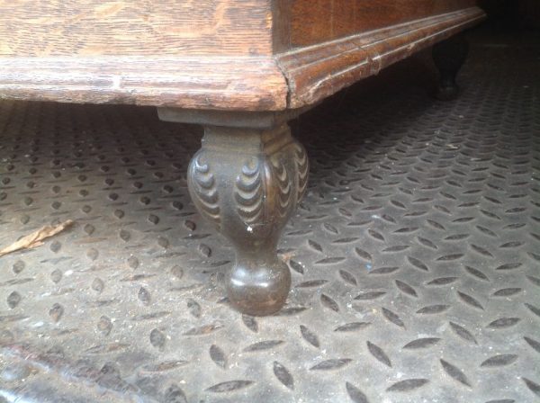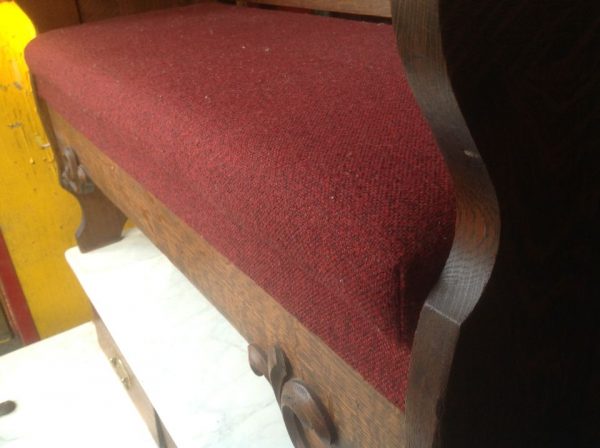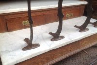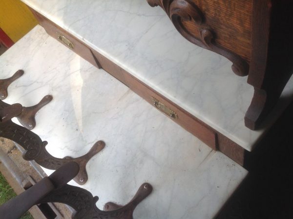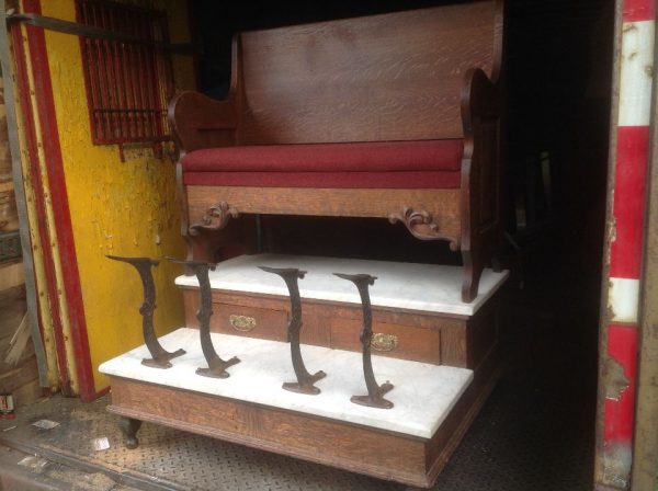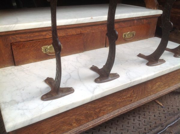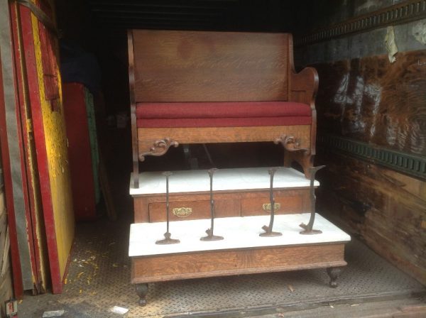 Antique oak and marble shoe shine stand in as found condition. Nice shape for its age with beautiful patina. Measures 48″ Long x 37″ wide x 61″ high. Remember those good old days……….