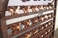 Rare complete rack Mangels penny arcade shooting targets in as found condition. Rusty with a nice used look with wonderful patina. Hard to find a complete rack as targets are getting harder to find……………
