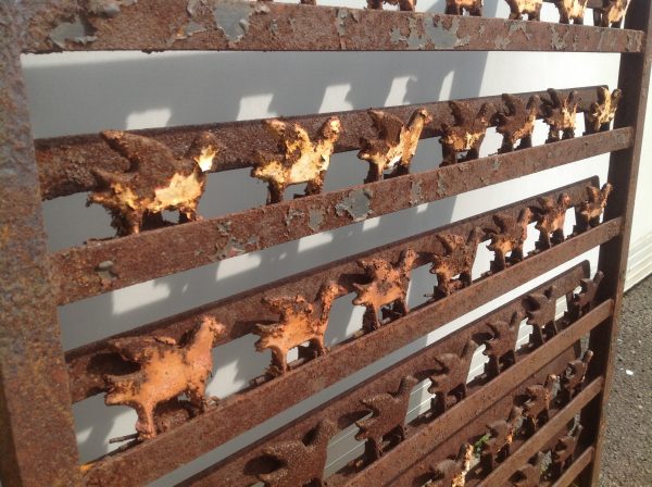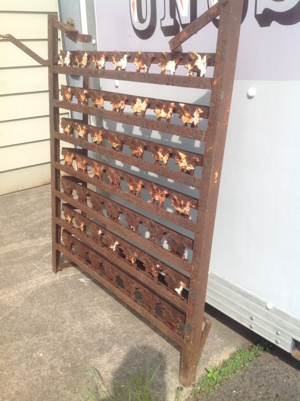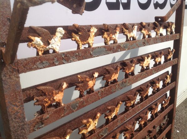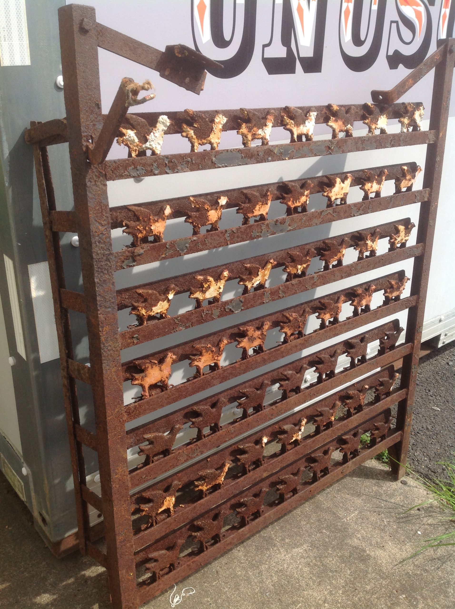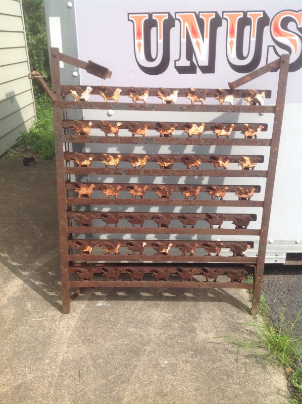 Rare complete rack Mangels penny arcade shooting targets in as found condition. Rusty with a nice used look with wonderful patina. Hard to find a complete rack as targets are getting harder to find……………