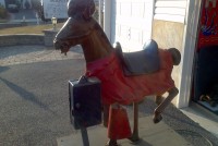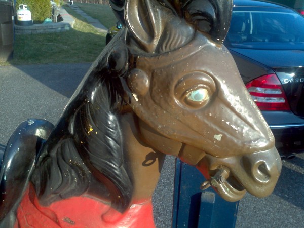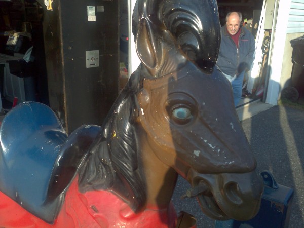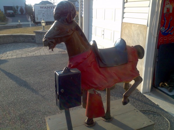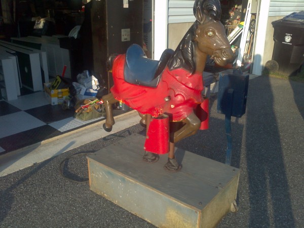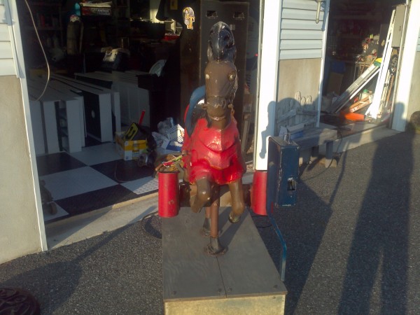 Rare coin operated medieval lancer horse ride in working condition.