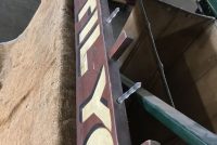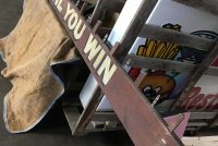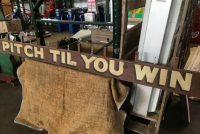 Antique heavy wood hand painted Pitch Til You Win sign measuring almost 12′ long in as found condition. Found in an old upstate Pennsylvania carnival salvage yard. Neat old sign…….