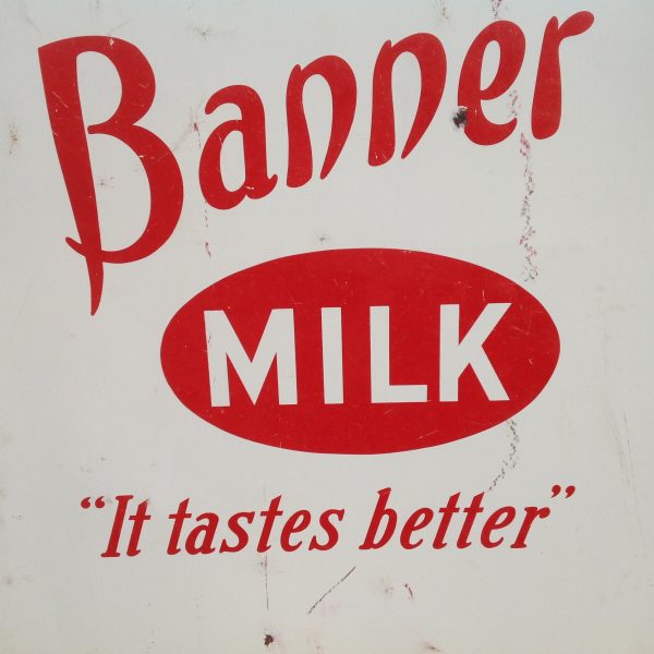Antique Porcelain Banner Milk Bottle Advertising Sign