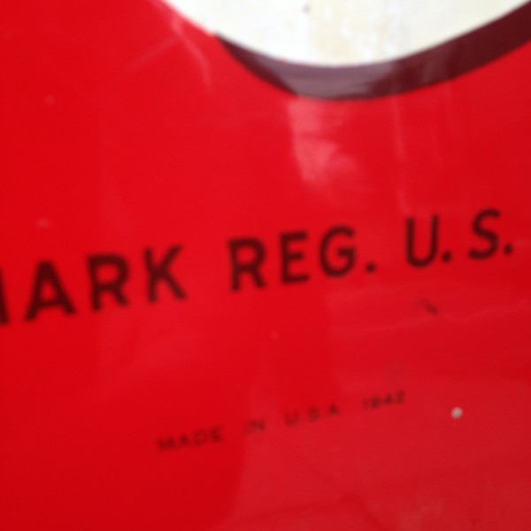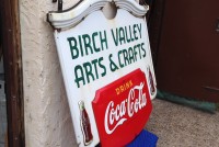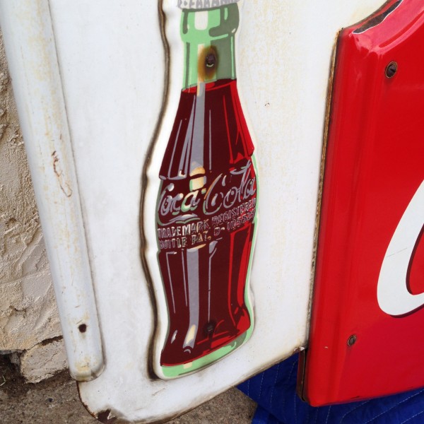 Vintage old 1942 porcelain over steel Coca Cola double sided sign in as found condition. Sign hung outside a store in South Carolina until just a few months ago when it was removed and stored away for safekeeping. Measures almost 5′ x 5′ with all original parts in near mint condition. Comes complete with hangers. You won’t find one better. If you are a sign or Coke collector, this sign belongs in your collection…………