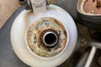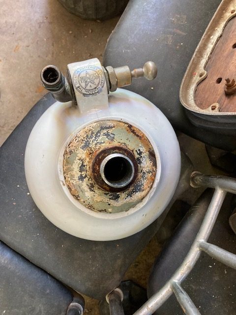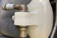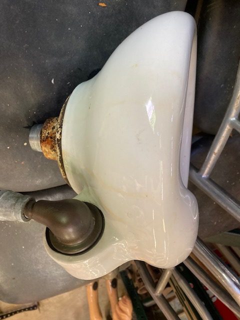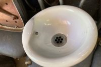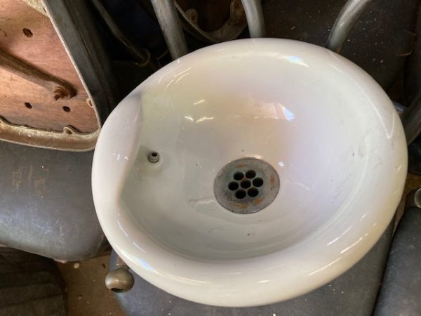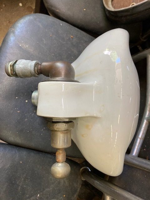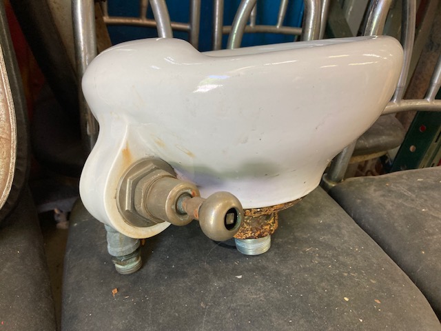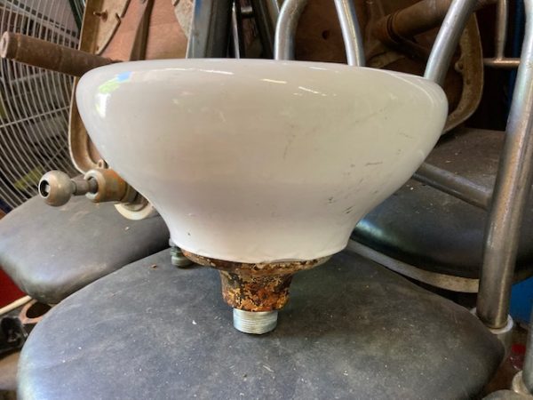 Vintage porcelain drinking fountain in as found condition. Will fit almost anywhere measuring 12″ diameter and 8″ tall. Just wonderful……..