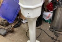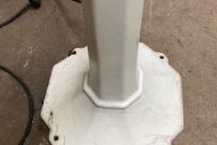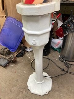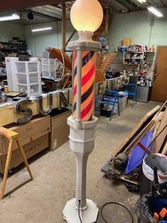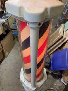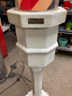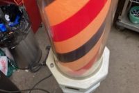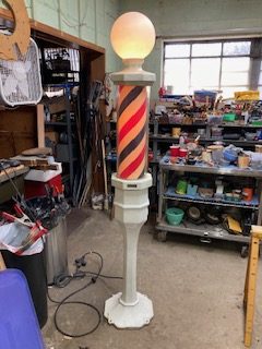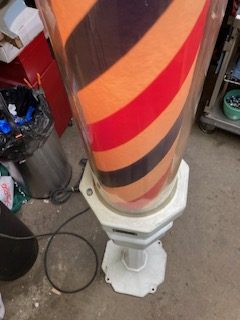 Fantastic antique Koken 95 porcelain art deco barber shop street pole in sa found corking condition. Working pole with paper cylinder sleeve measuring about 7′ tall or more with globe. Wonderful condition for the age…………