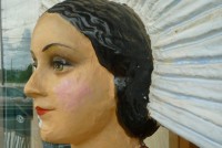 Early French papier (paper) mache advertising display statue. Over 6′ tall with very fine details. She would greet you at the door with the menu of the day and chef specials. Need something unusual for that new restaurant, then this may be for you………….