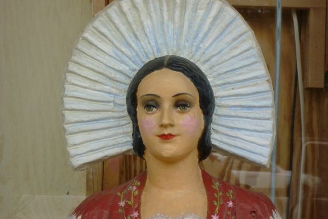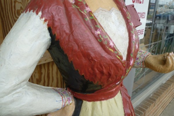 Early French papier (paper) mache advertising display statue. Over 6′ tall with very fine details. She would greet you at the door with the menu of the day and chef specials. Need something unusual for that new restaurant, then this may be for you………….