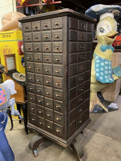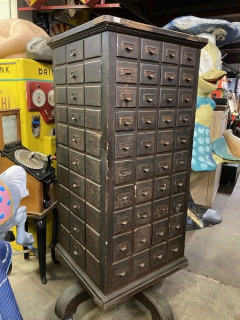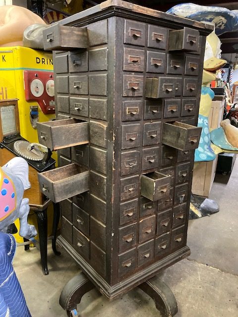 Antique Rotating Multi-Drawer Hardware Cabinet