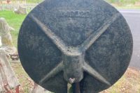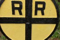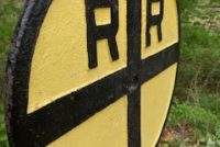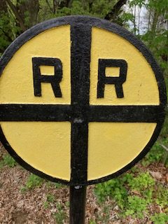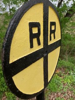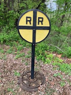 Heavy cast iron round railroad crossing sign in as in condition. Signs come complete with base for displaying.