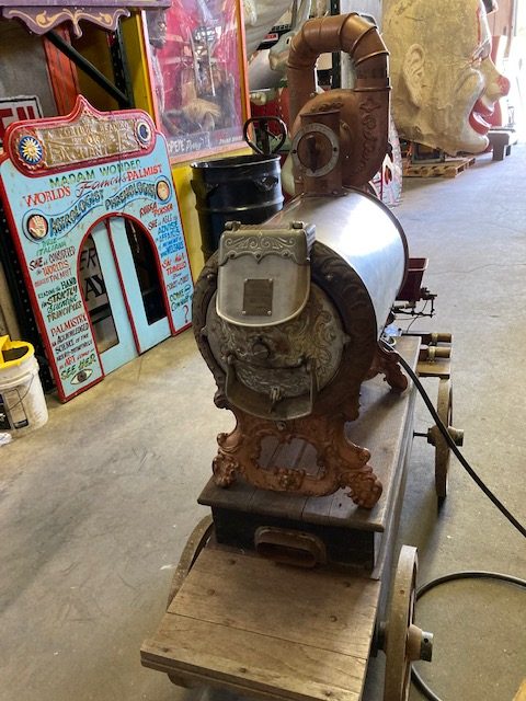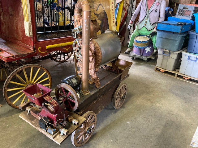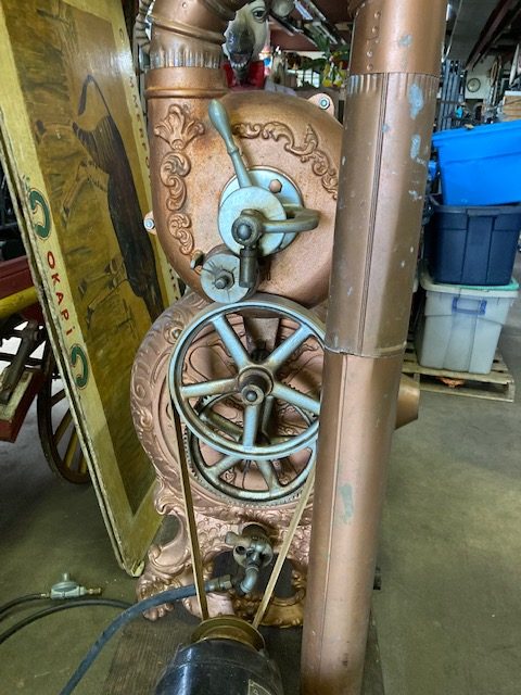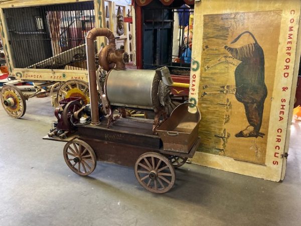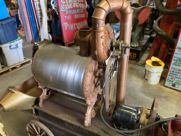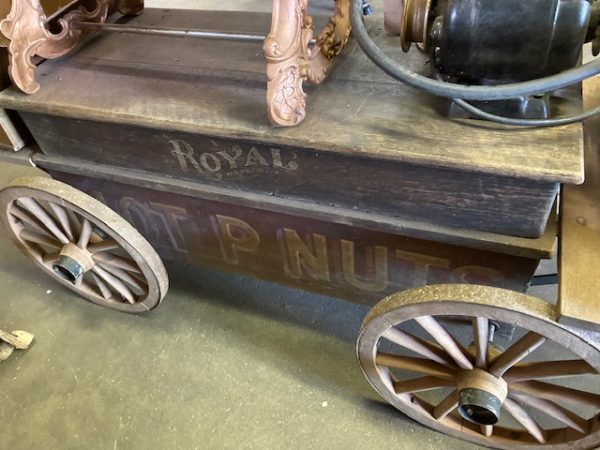 Antique Royal #1 peanut roaster with hit and miss engine in as found working condition. Used last year at the Big E State Fair, Springfield, MA. Original roaster with wood cart, as found with minimal restoration. A true piece of Americana………….