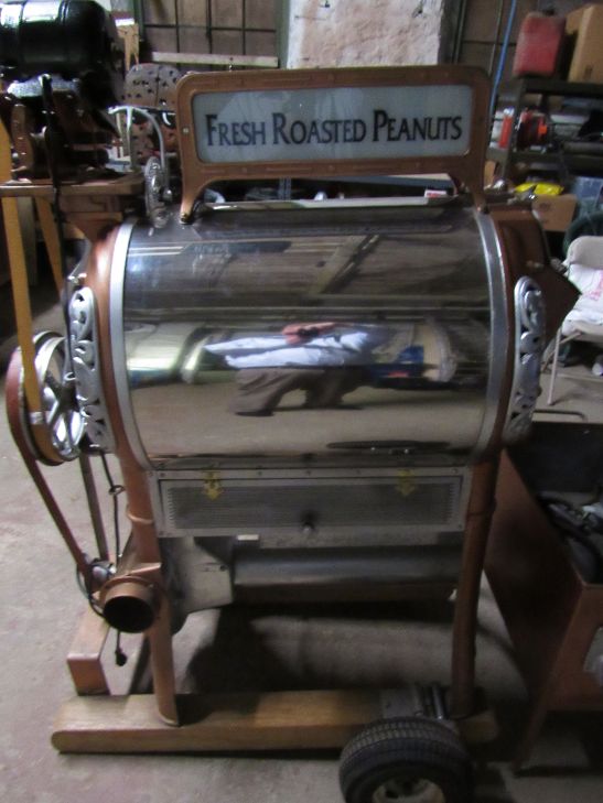 roaster on consignment 2 Royal #5 peanut roaster, fully functional, restored to mint condition. Ability to roast up to 25lbs with working peanut bin included. Original id plate reads model number 3224.  Peanut sign lights up, leather belts and runs on propane. Roaster is mobile and moveable by one person. All original parts with the exception of a new motor. Just beautiful and ready to display or work. Email for a shipping quote………roaster on consignment 3 roaster on consignment 4 roaster on consignment 1 roaster on consignment