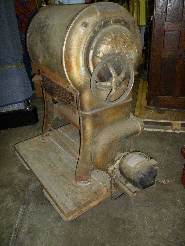 Antique Royal peanut/coffee roaster number 5 1/2 in as found condition. Found in an old barn in Lancaster County, Pa. Last used at the Lancaster Fairgrounds back in the 1970’s. Will need to be cleaned, the motor’s cord rewired and a new belt installed but otherwise looks to be complete with a few dents. Holds 25LBS of peanut or coffee. Hard to find at this price……