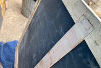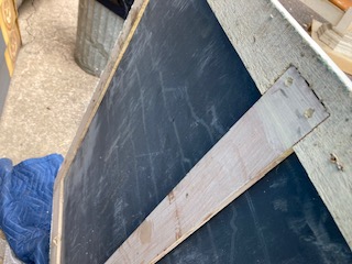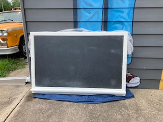 Antique slate schoolhouse chalkboard in as found condition. Recently removed from a church founded in 1910. Great shape needing some cleaning but otherwise ready to hang in your kitchen or game room. Measures about 5′ x 3’………..