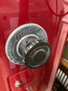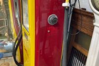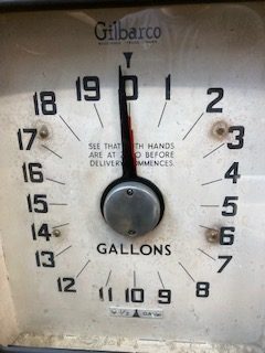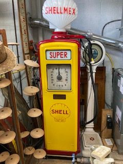 Antique Shellmex Gilbarco gas station gas pump in as found restored condition. Unusual design with rotating top piece. Nicely done missing one Gilbarco brass nameplate. Ready for displaying in your collection……..