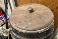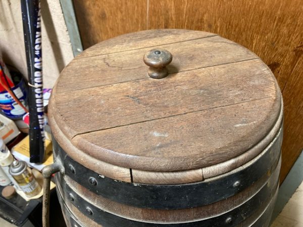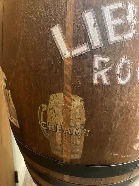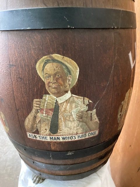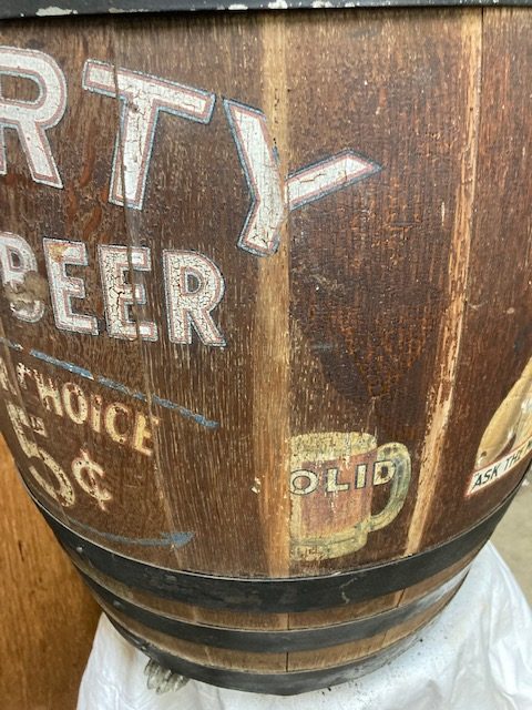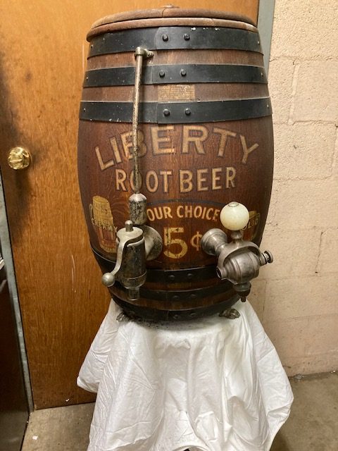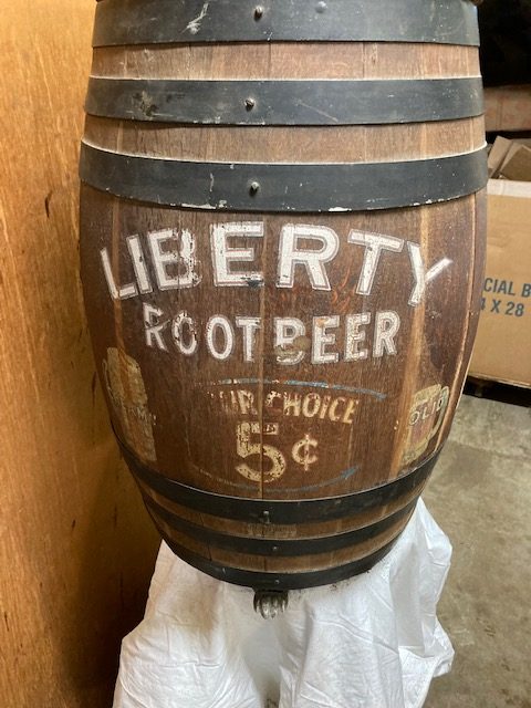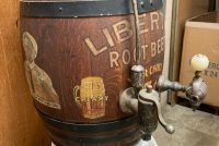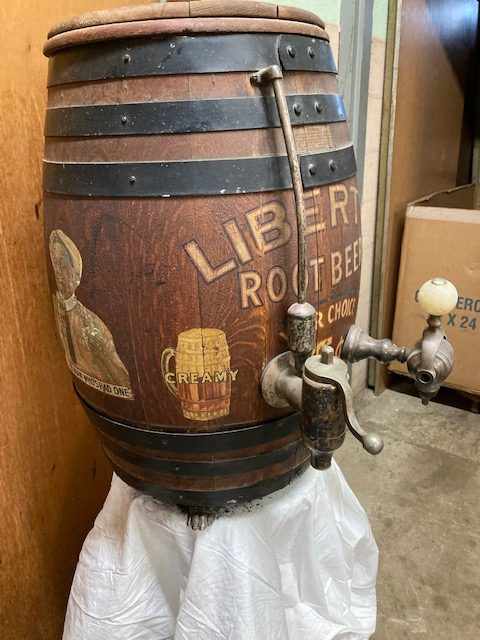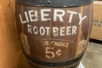Antique soda fountain Liberty Root Beer barrel in as found condition. Wonderful graphics and ready for displaying in your collection.
