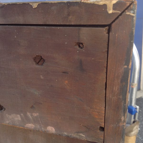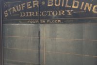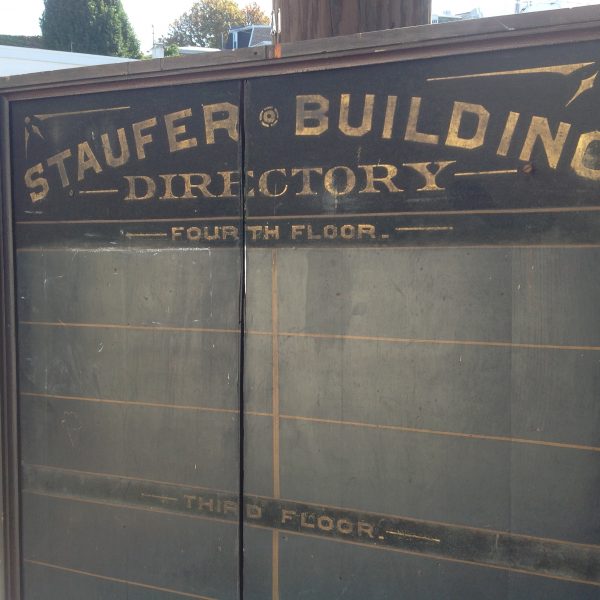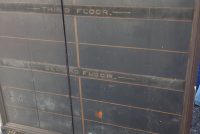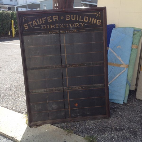 Antique building directory marquee sign in as found condition. Measures almost 5′ x 5′ with gold guilded lettering. Nice for any kitchen………..