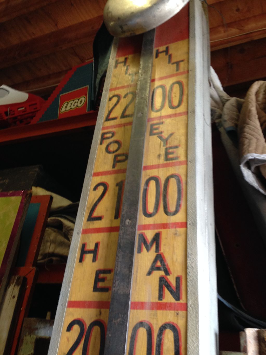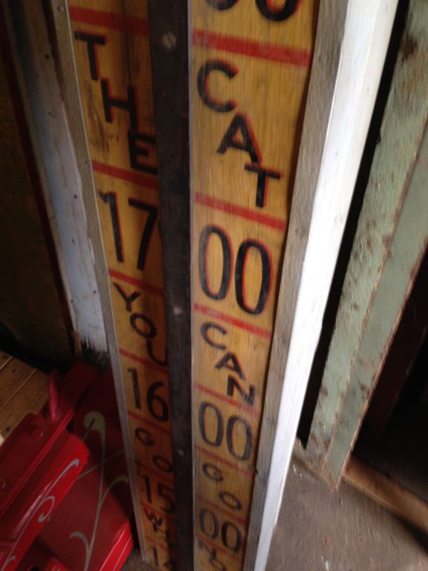Antique strong man carnival high striker in as found condition. Complete with old wood hammer. Large, at least 20’…………